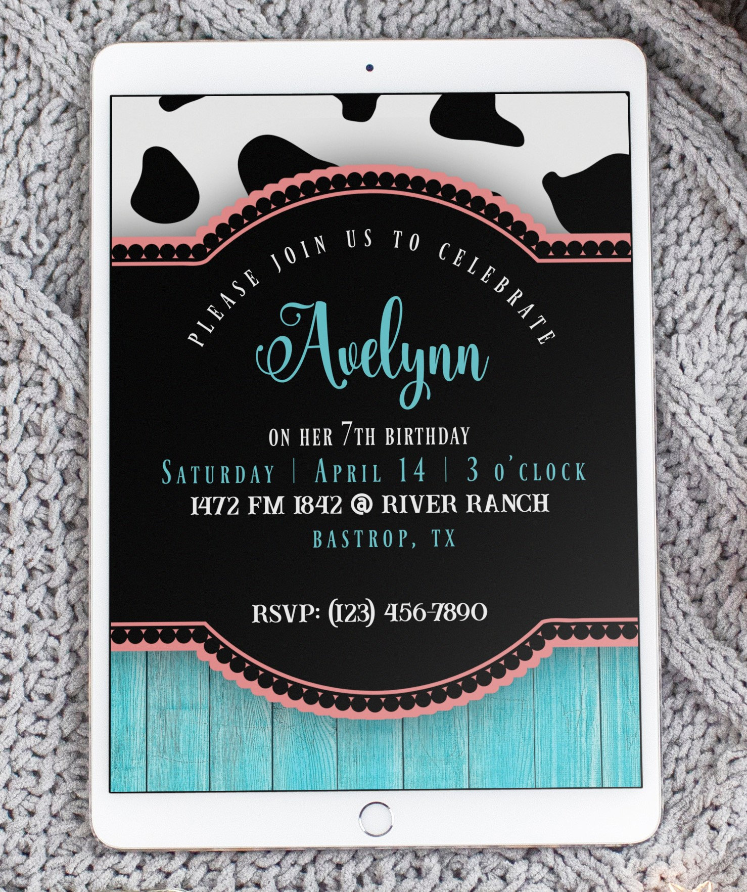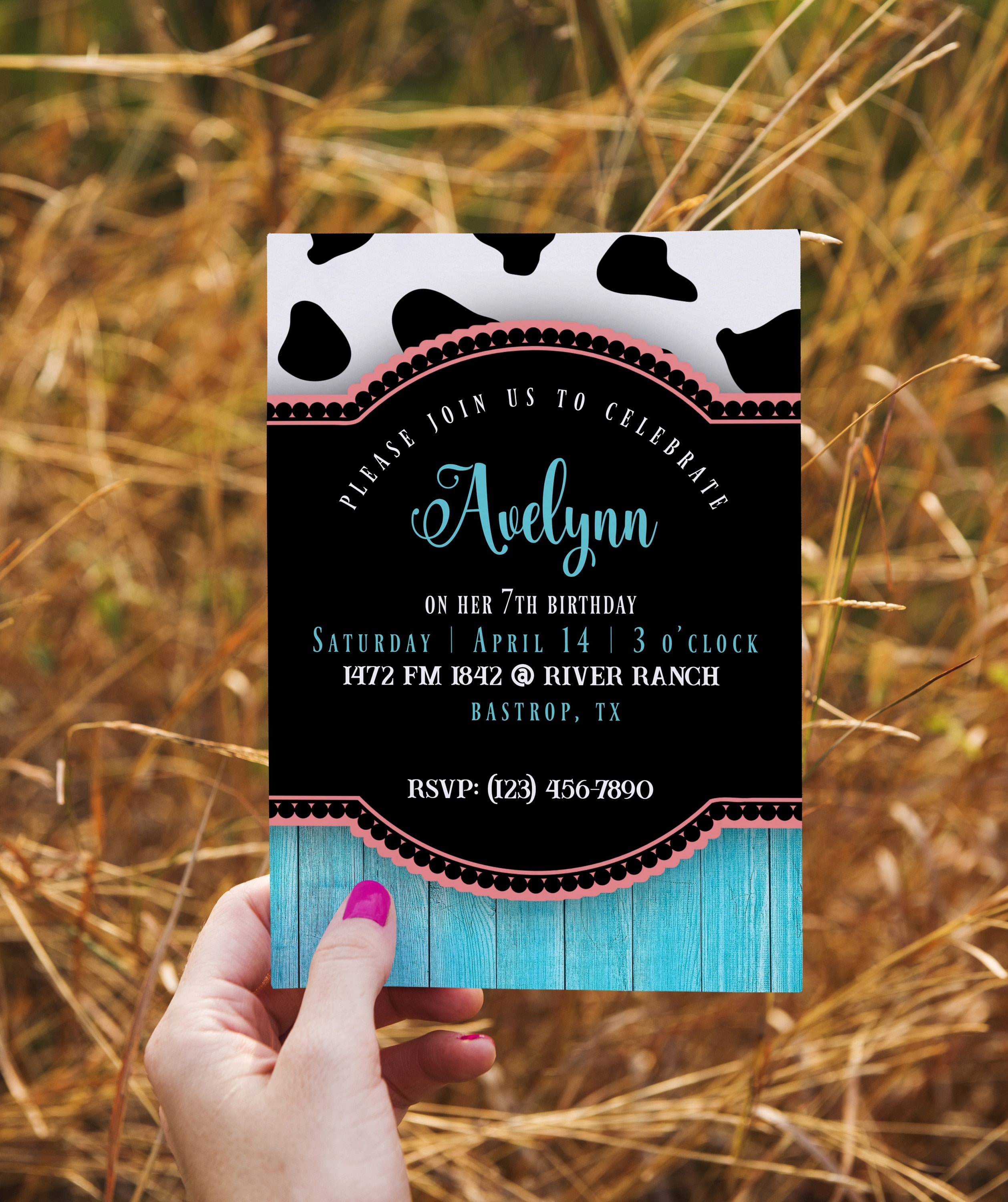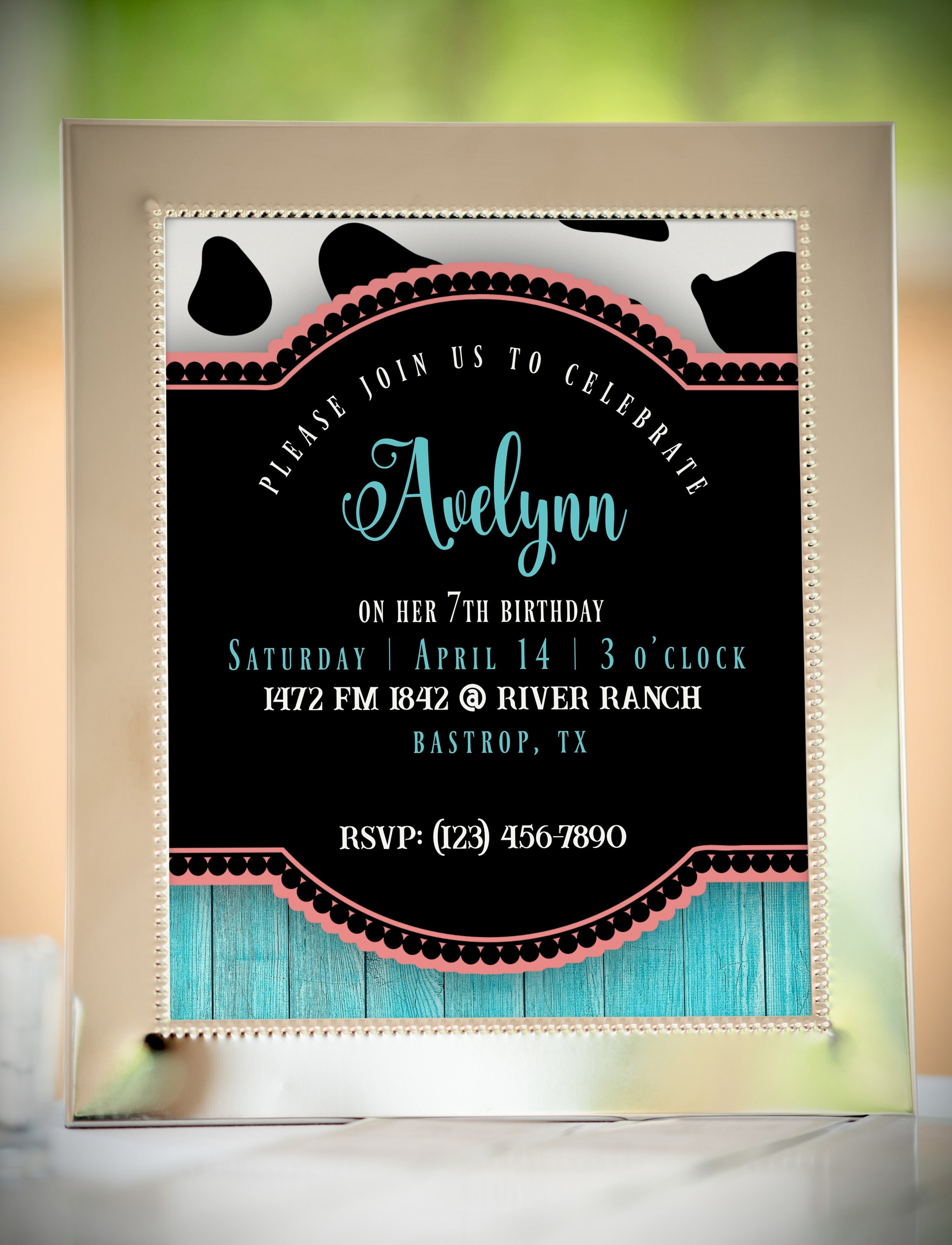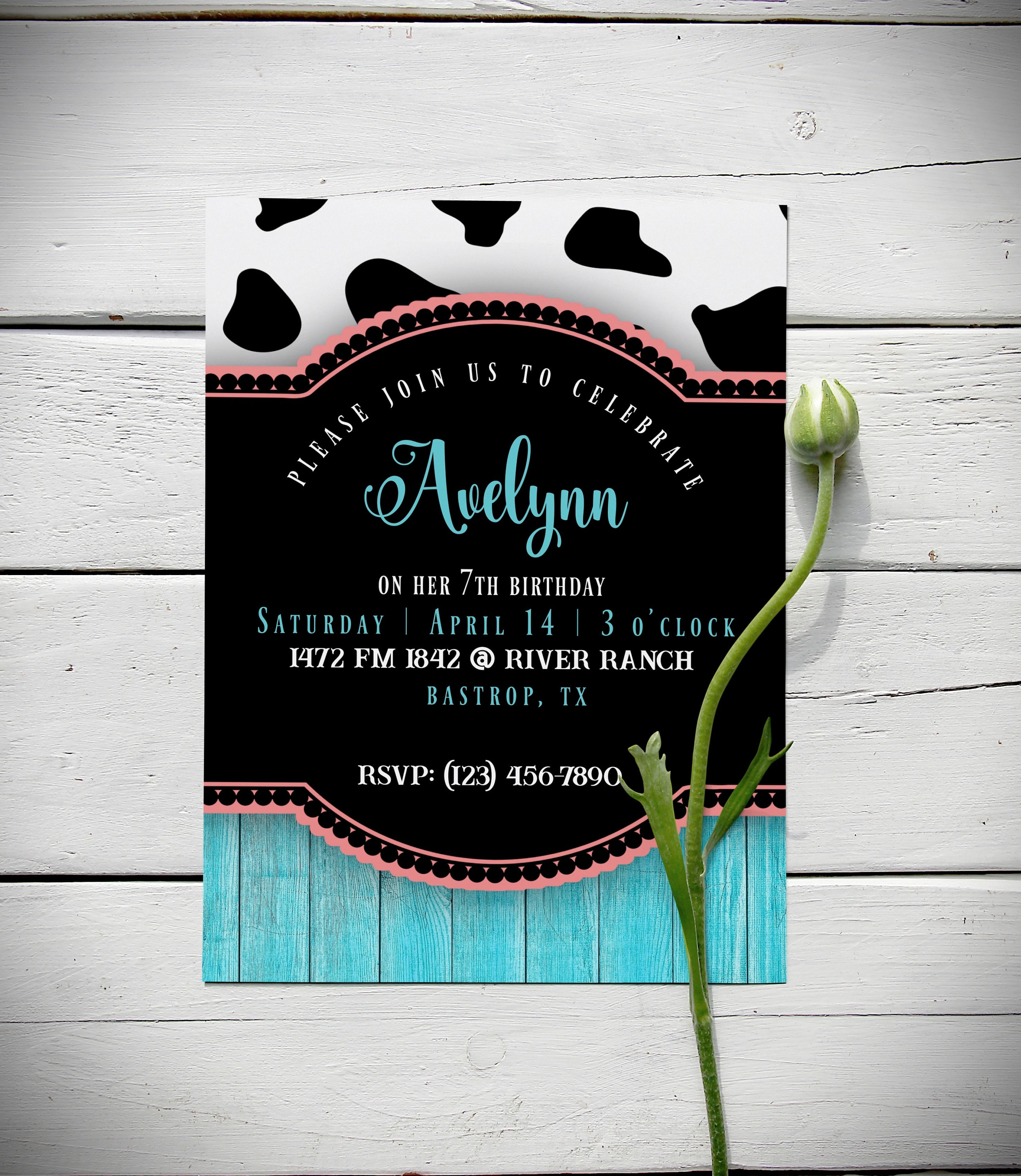 Cow Print Invitation Template Editable Cow and Turquoise Birthday