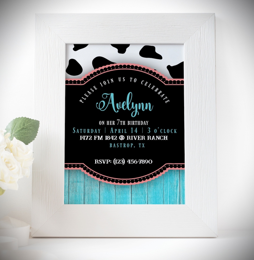 Turquoise Cow Print Invitation Template Editable Cow Print Etsy