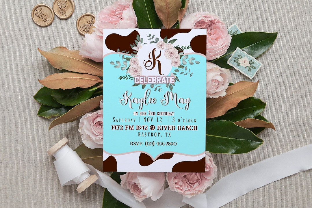 Cow Print Invitation Template Editable Cow and Turquoise Etsy