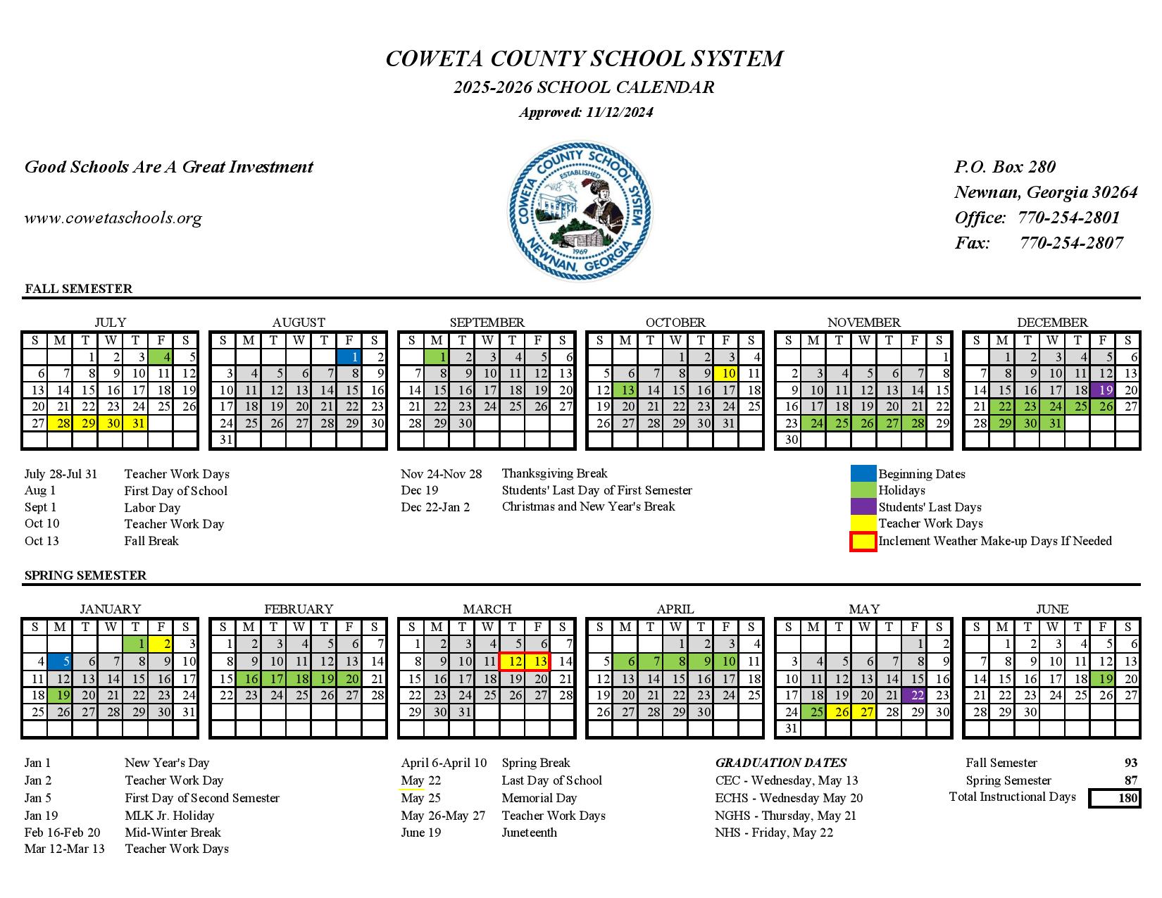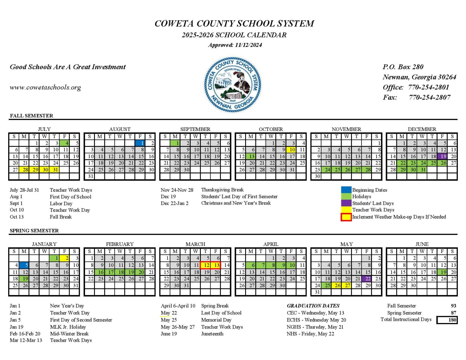 Coweta County Schools Calendar 2025 2026 GA Calendar