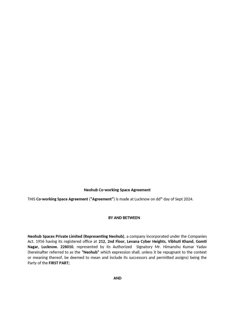 Co Working Space Agreement Template