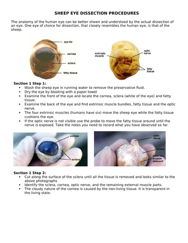 SHEEP EYE DISSECTION PROCEDURES Worksheets Library