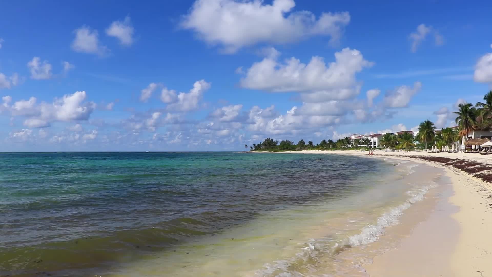 Tropical caribbean beach clear turquoise water Playa del Carmen Mexico