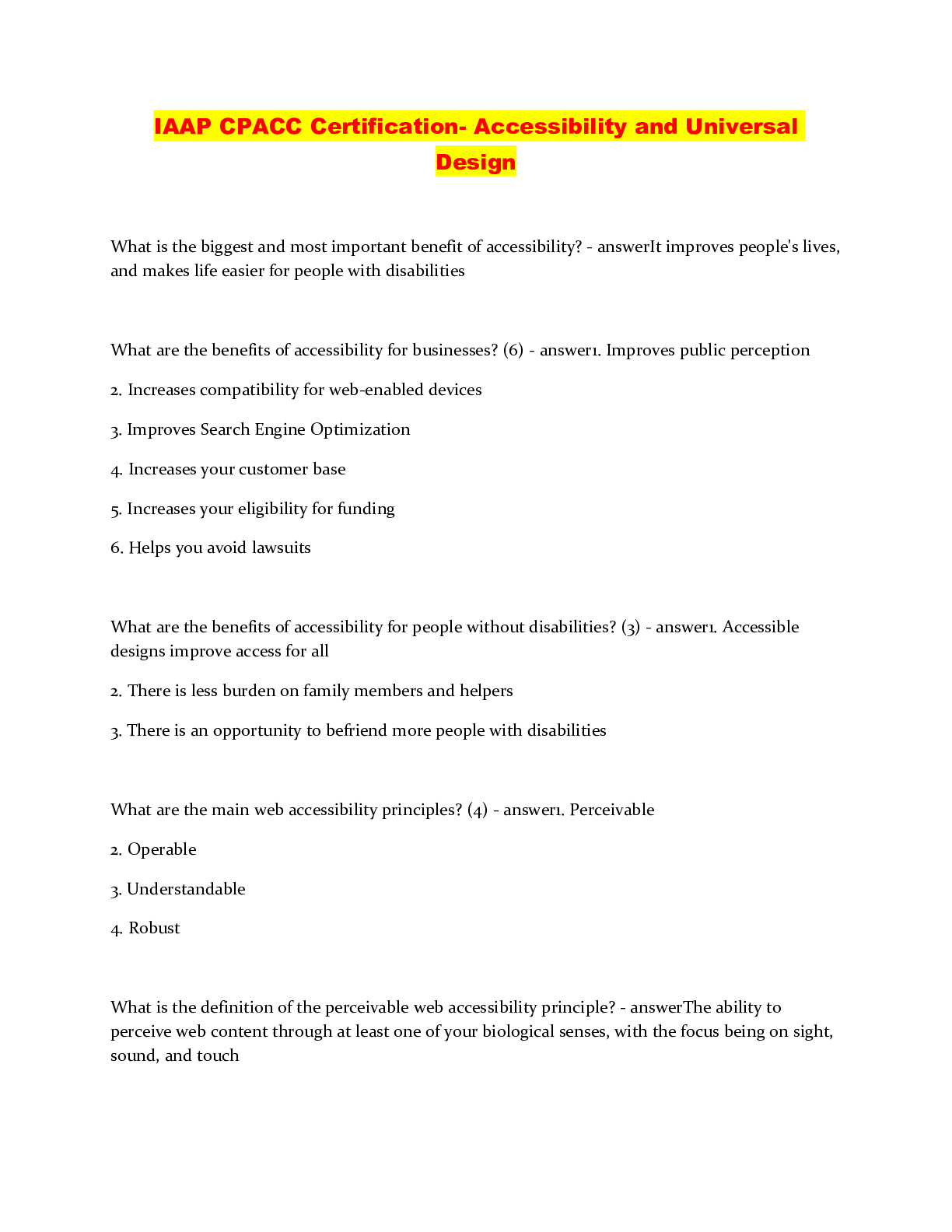 IAAP CPACC Certification Exam Questions Answers 2023/2024 IAAP