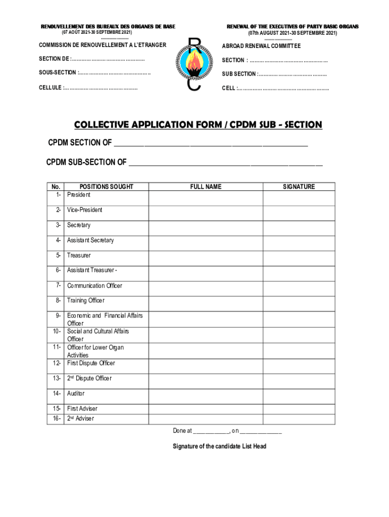 Fillable Online COLLECTIVE APPLICATION FORM/ CPDM BRANCH Fax Email