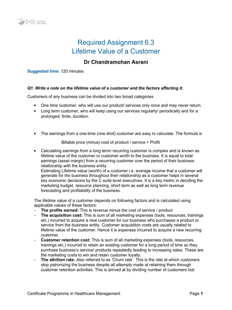 ISB CPHM Required Assignment 6 3 Chandramohan Asrani PDF Cost