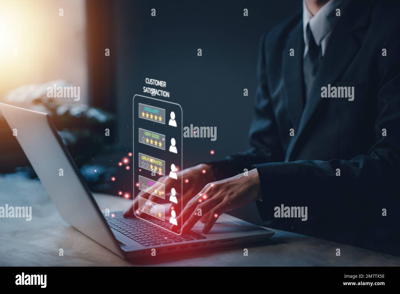 Customer satisfaction Businessman reviews with notebook (Laptop