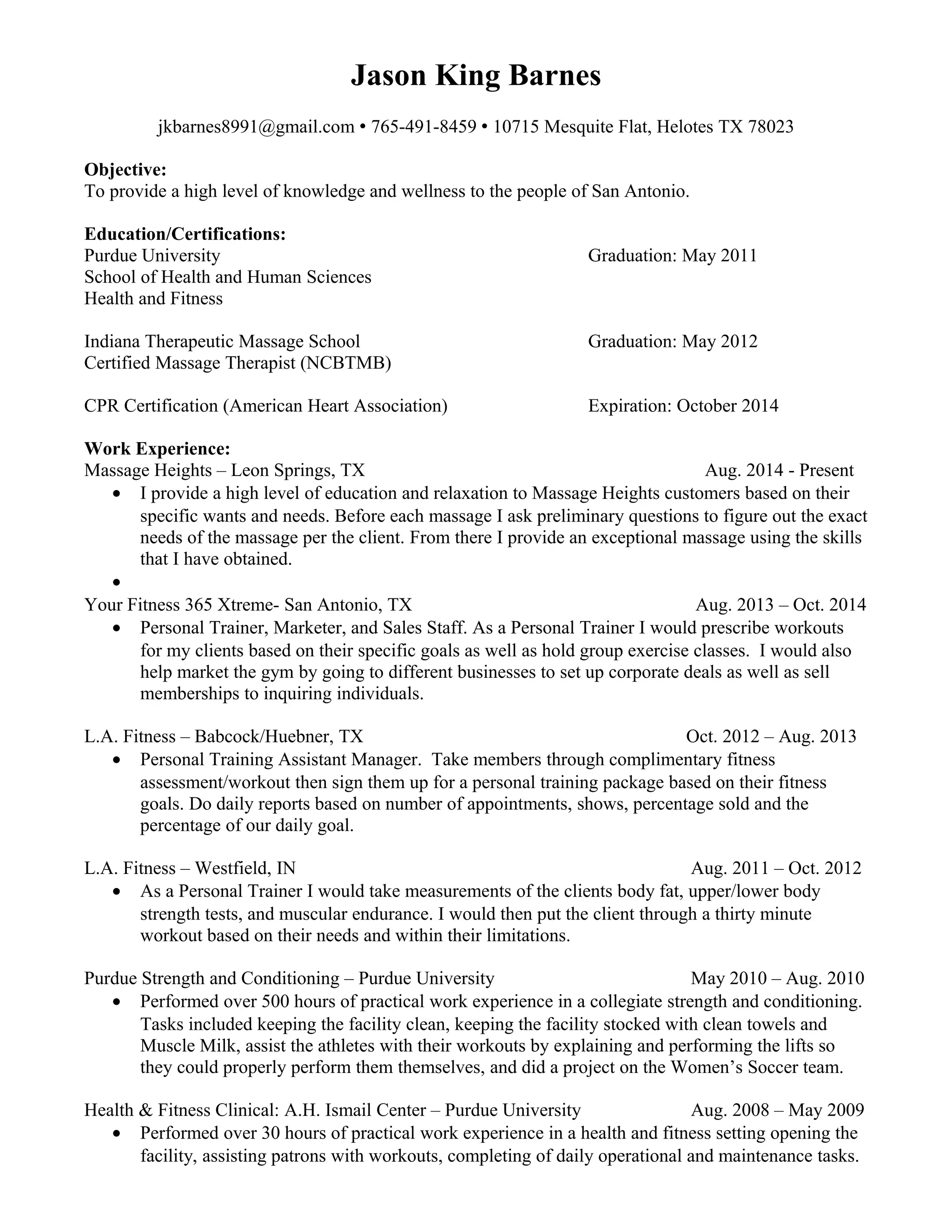Massage Therapist Resume Example
