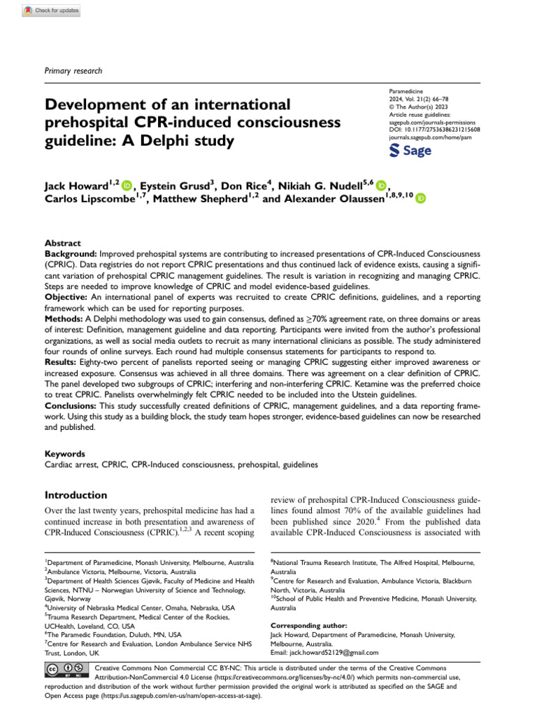 Howard Et Al 2023 Development of An International Prehospital CPR