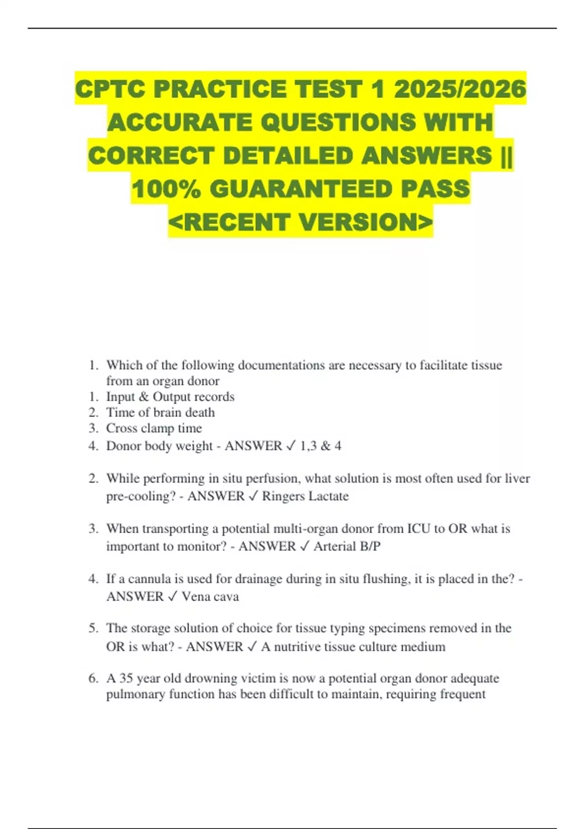 BUNDLE FOR CPTC Certified Procurement Transplant Coordinator Exam 1 2