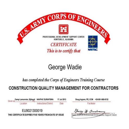 CQM Certification Charleston SC USACE NAVFAC Army Corps of