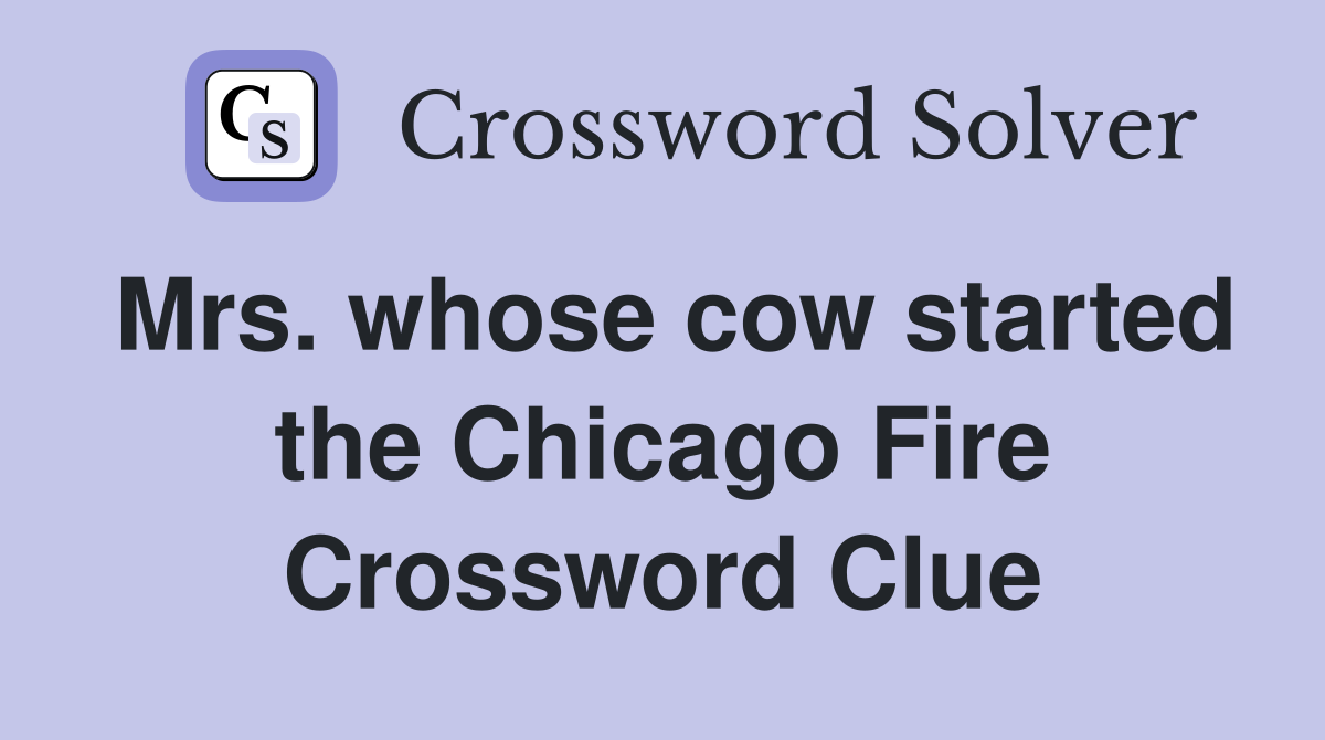 Mrs whose cow started the Chicago Fire Crossword Clue Answers