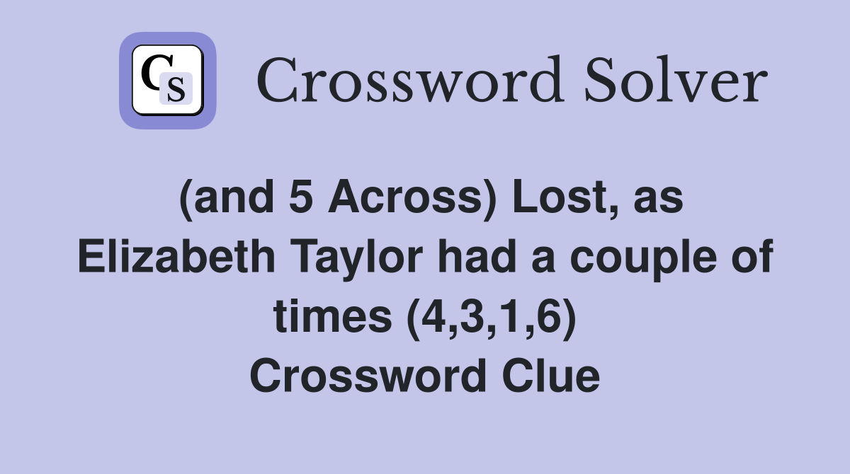 (and 5 Across) Lost as Elizabeth Taylor had a couple of times (4 3 1 6