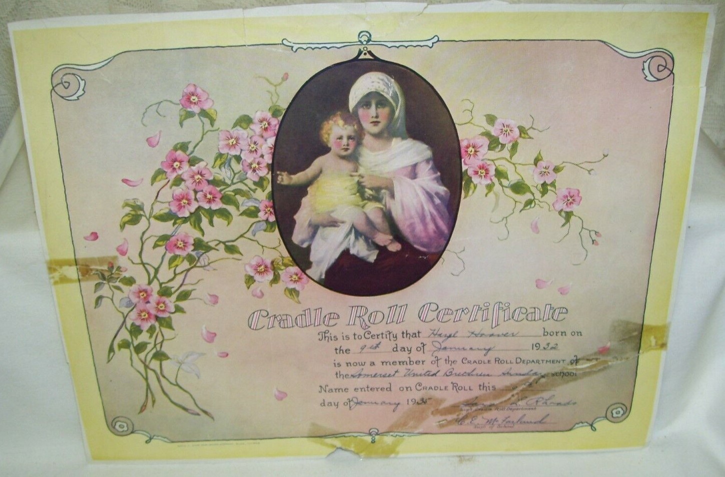 Купить 1900 1939 1932 Cradle Roll Certificate Sunday School enRollment