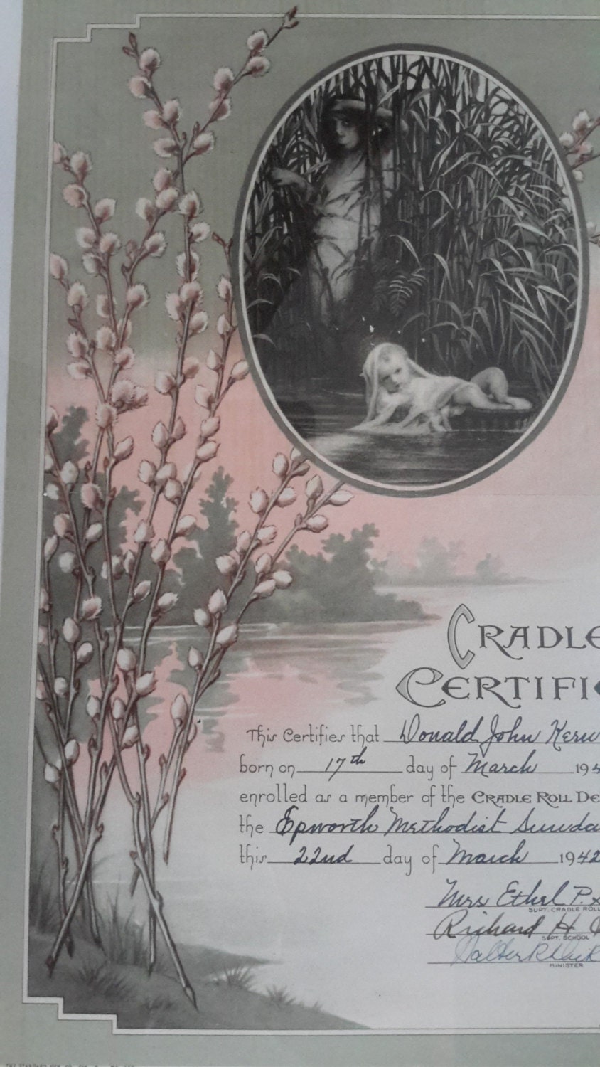 1942 Vintage Cradle Roll Certificate Methodist Sunday School in Wood