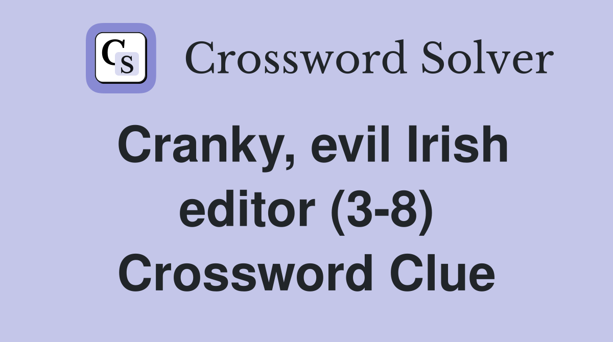Cranky evil Irish editor (3 8) Crossword Clue Answers Crossword Solver