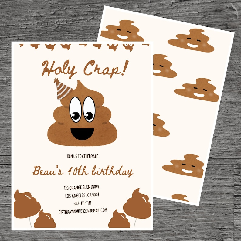 Holy Crap quotEmoji quot for Beau Theme Birthday Party Invitation
