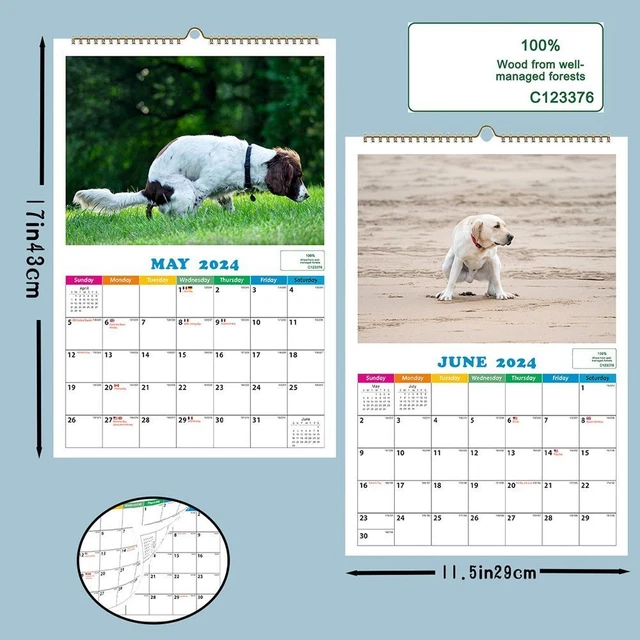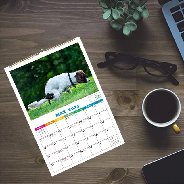 DOG POOPING CRAPPING 2024 Hanging Calendar Monthly Wall Calendar Home £