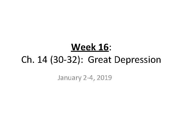 Week 16 Ch 14 30 32 Great Depression