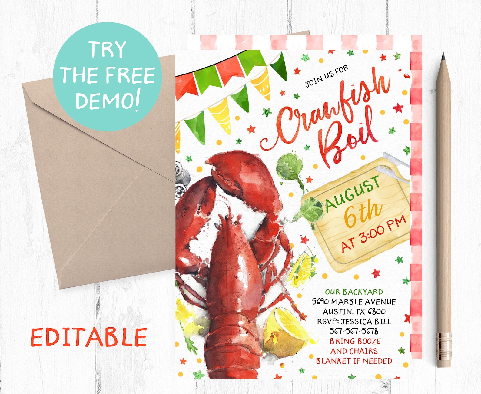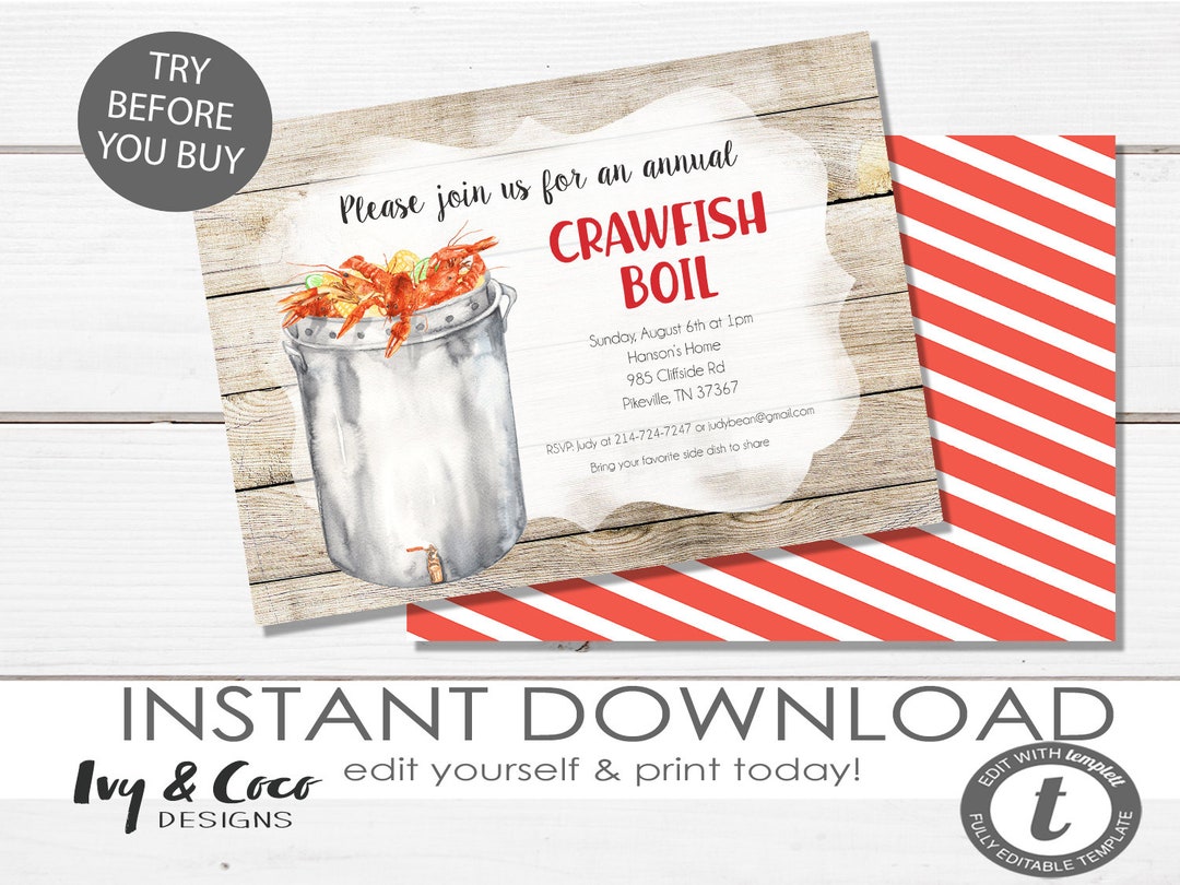 Crawfish Boil Invitation Editable Crawfish Boil Invitation Etsy