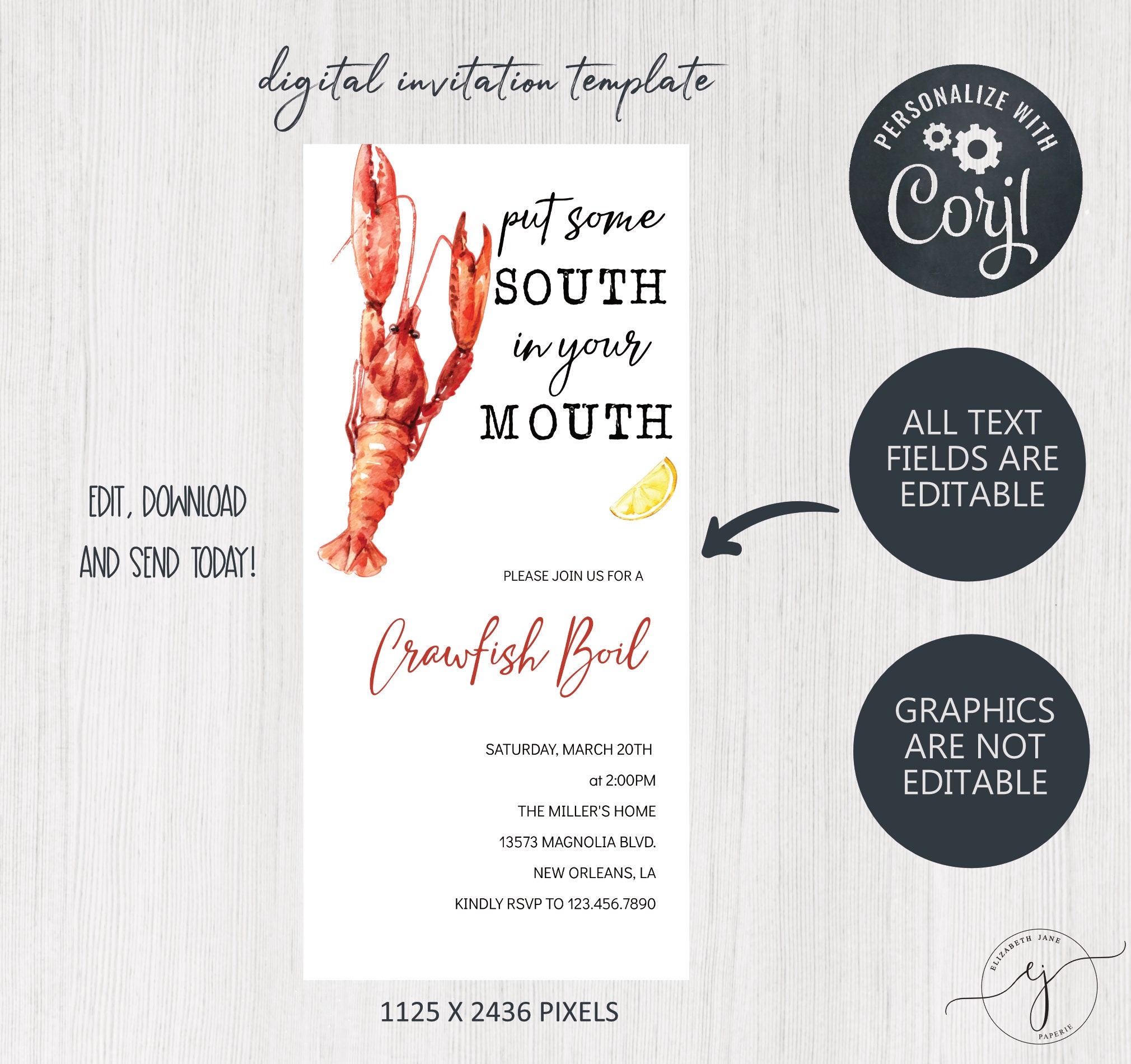 Editable Crawfish Boil Digital Invitation Template Put Some Etsy
