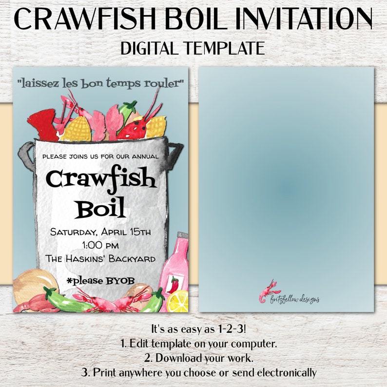 Crawfish Boil Invitation Digital Template Cajun Party Etsy