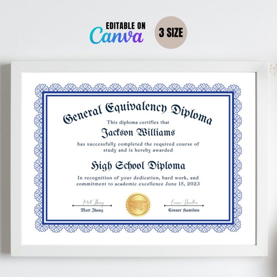 Custom GED Diploma Certificate Template Editable and Printable in Canva