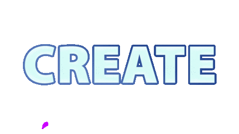 Vibrant 3D CREATE words amidst colorful shapes paint splashes and