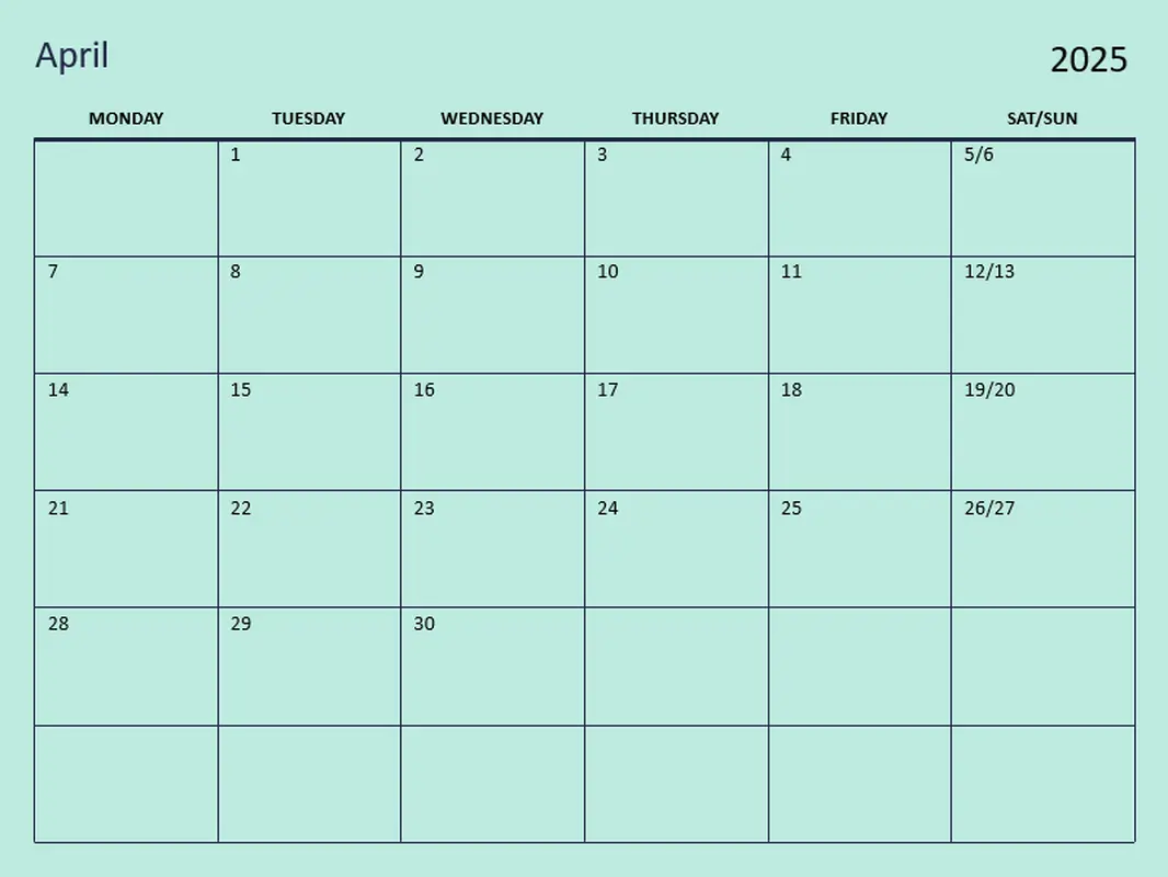 Easy Blank Monthly Calendar Template