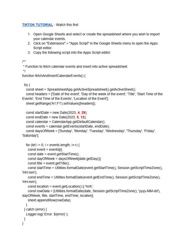 Fetch and Insert Google Calendar Events Into Spreadsheet PDF