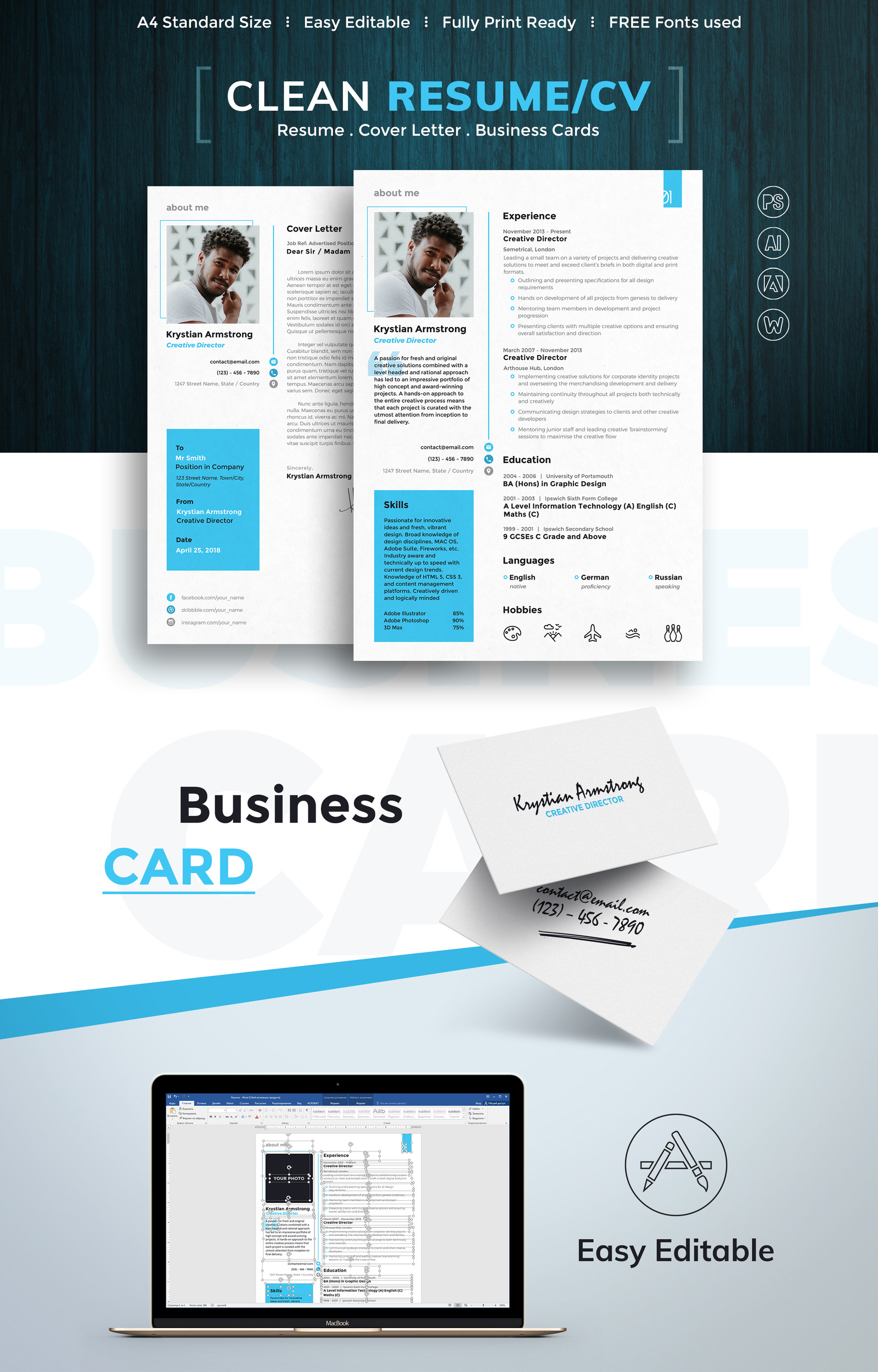 Creative Director Resume Template Word Apple Pages PSD Publisher