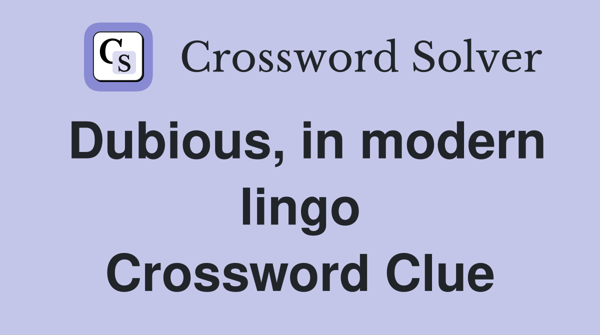 Dubious in modern lingo Crossword Clue Answers Crossword Solver