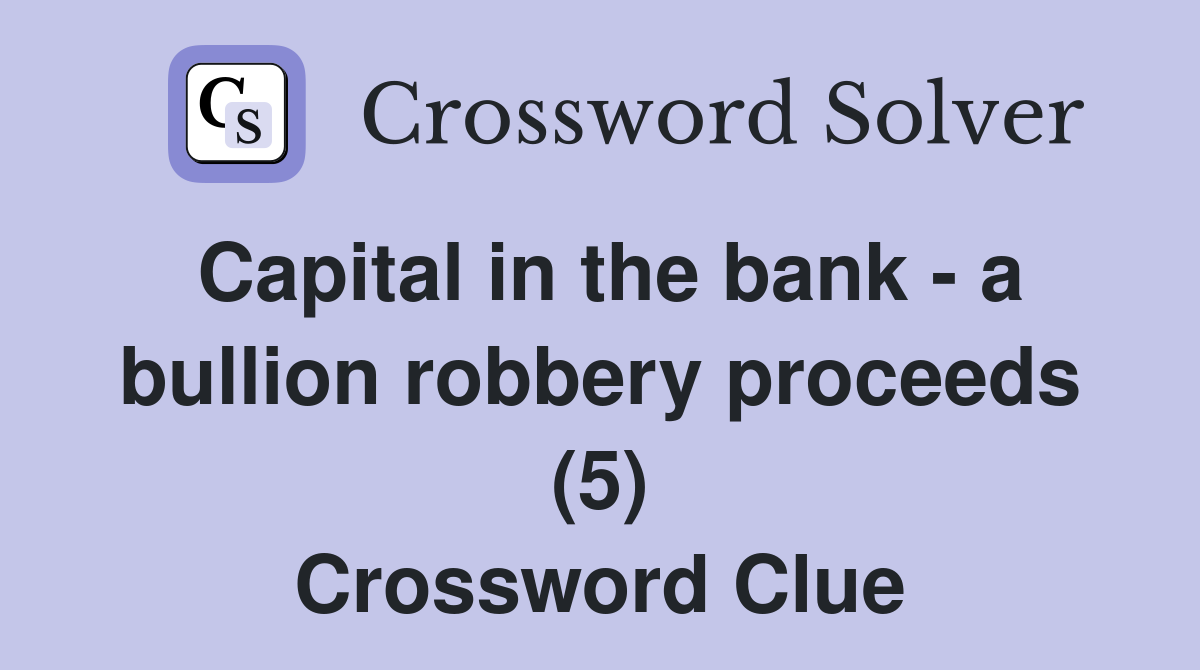 Capital in the bank a bullion robbery proceeds (5) Crossword Clue