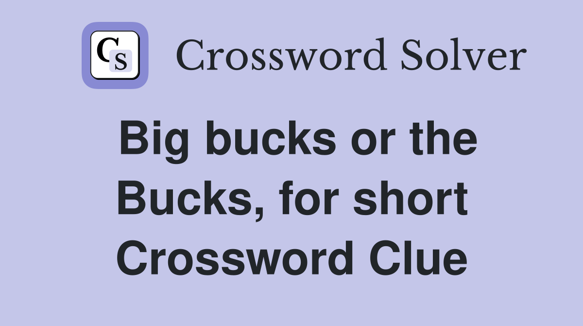 Big bucks or the Bucks for short Crossword Clue Answers Crossword