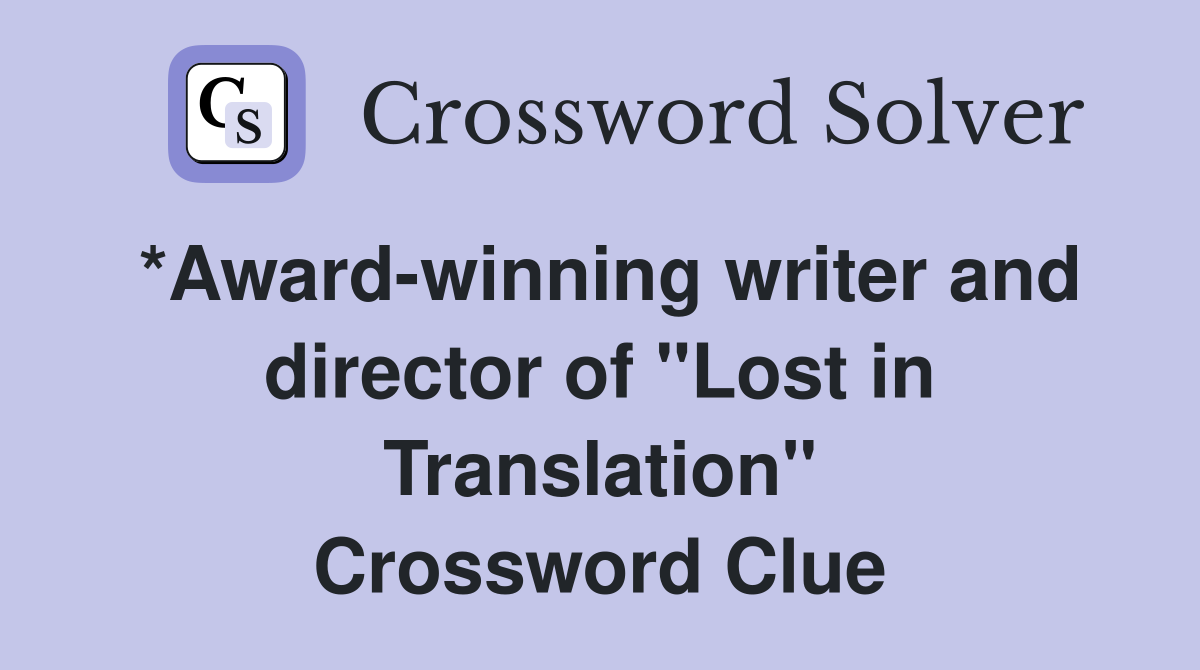 *Award winning writer and director of quot Lost in Translation quot Crossword