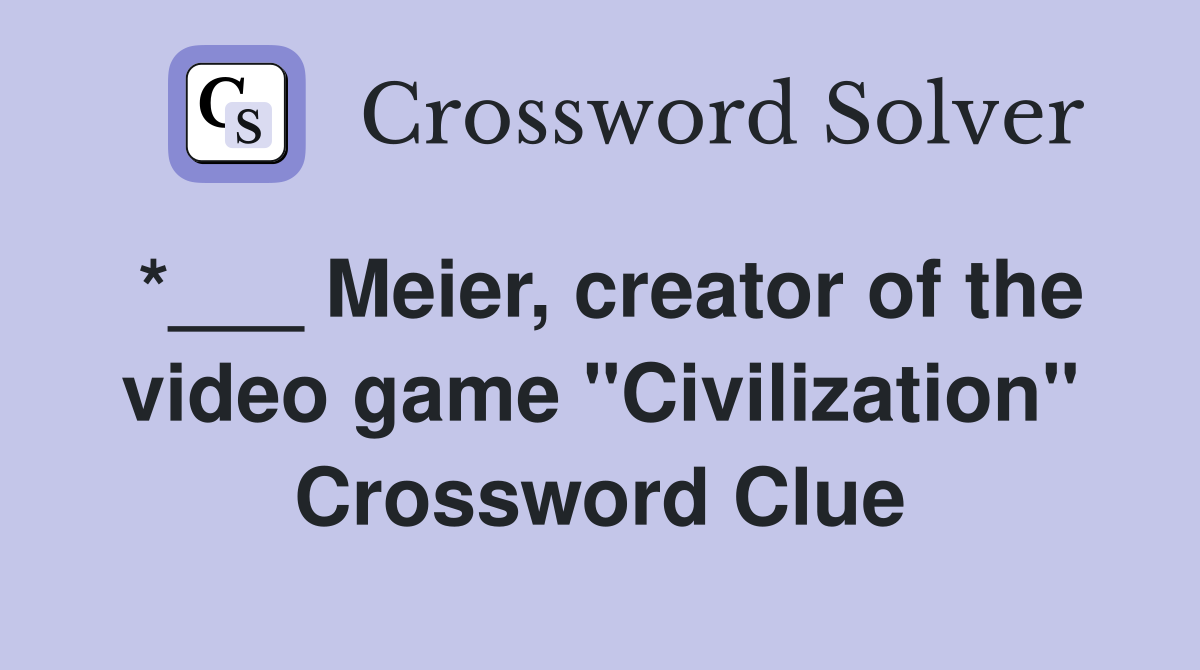 Meier creator of the video game quot Civilization quot Crossword Clue