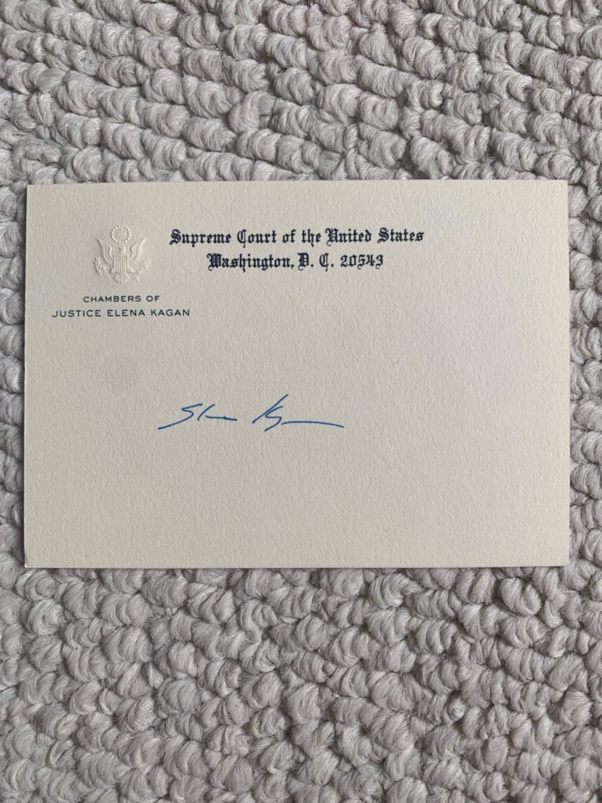 ELENA KAGAN HAND SIGNED SUPREME COURT CARD SUPREME COURT JUSTICE JSA