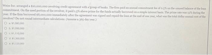 Solved Weiss Ine arranged a $10 000 000 revolving credit Chegg com