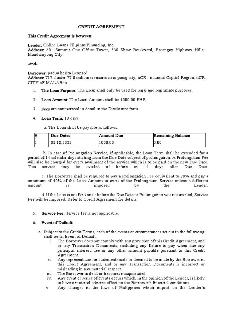 Here are some of the images for Credit Line Agreement Template that we found in our website database.