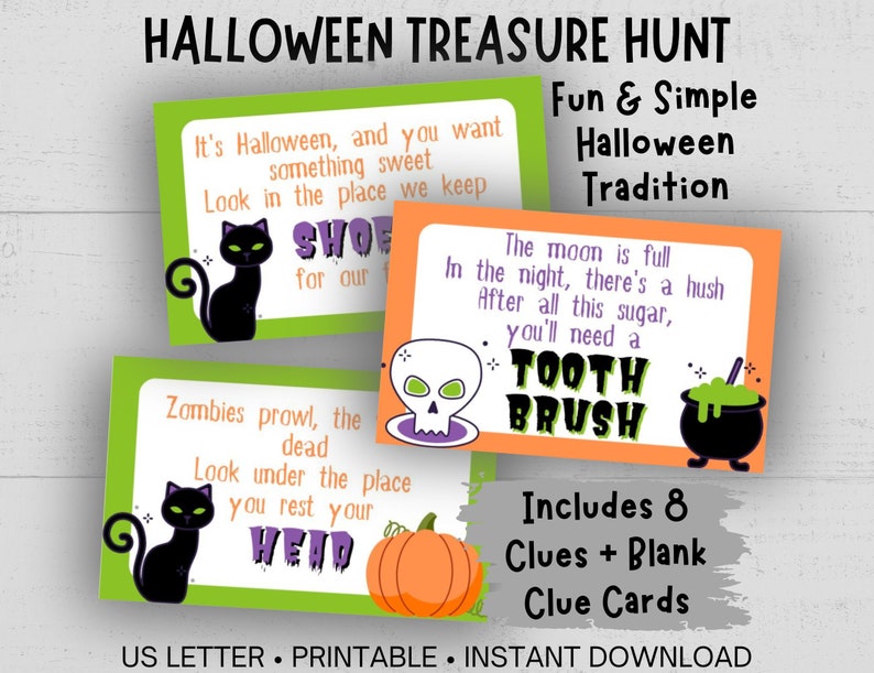 Printable Halloween Treasure Hunt Clues Indoor Spooky Scavenger Hunt