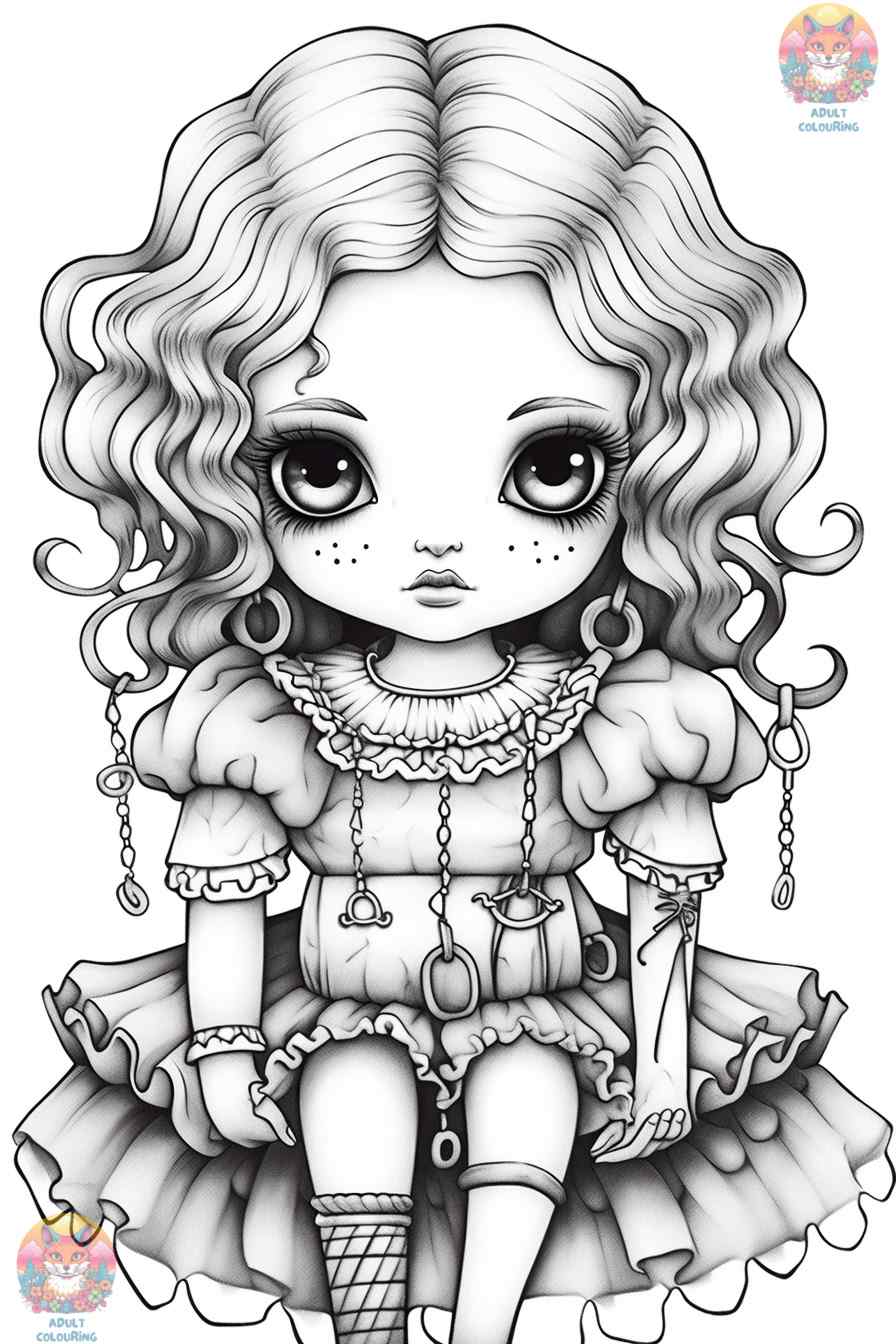 3 Creepy Cute Kawaii Coloring Pages For Girls Designs und Grafiken