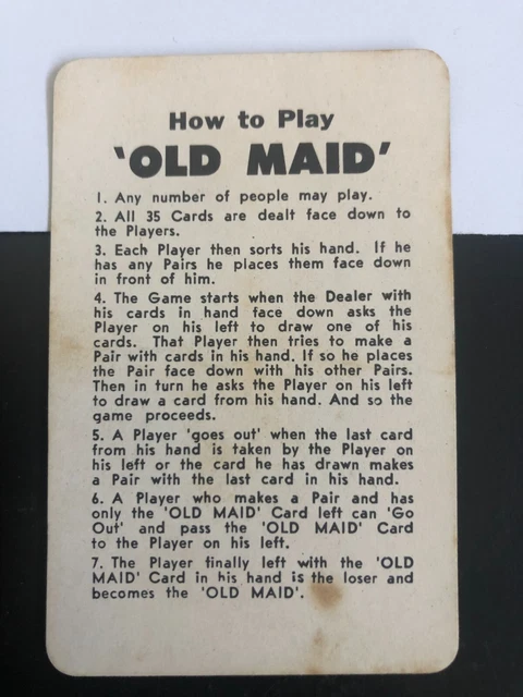 VINTAGE RETRO OLD Maid Kids Game Swap Card: How to Play Instruction