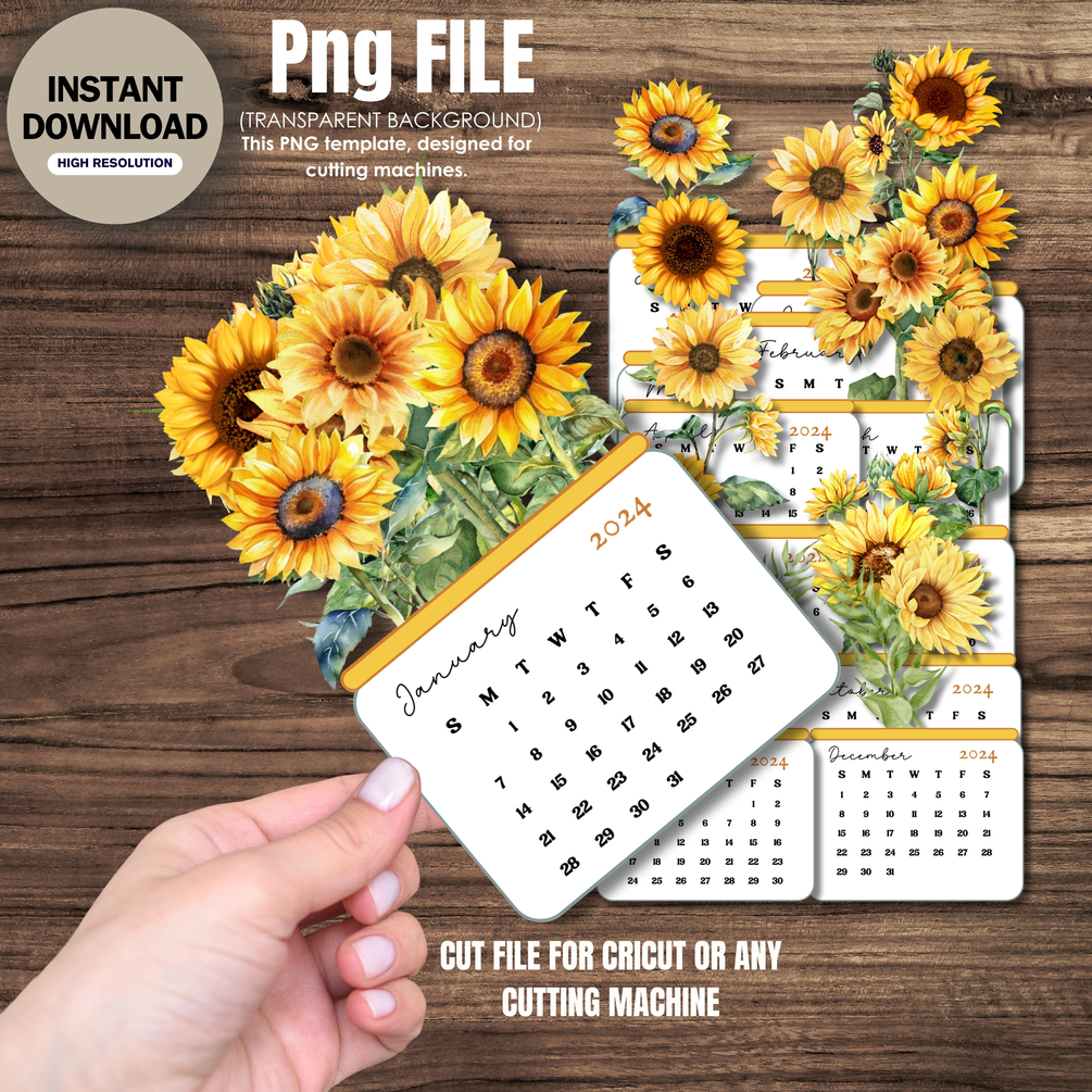 Sunflower Desk Calendar 2024 2025 Printable Cricut Compatible and
