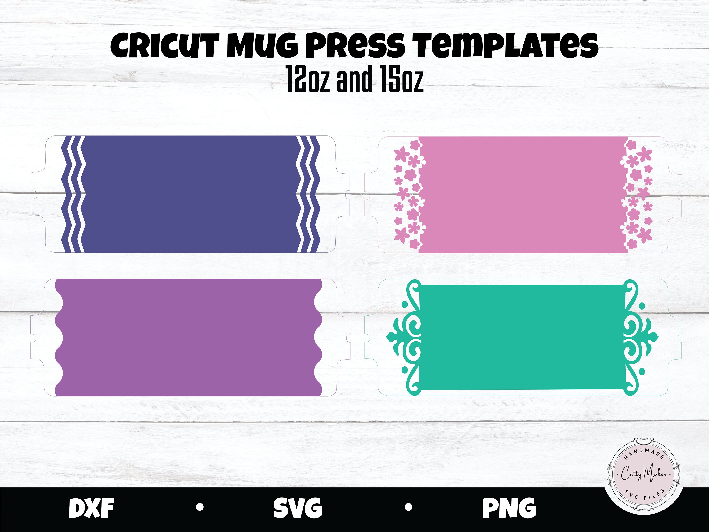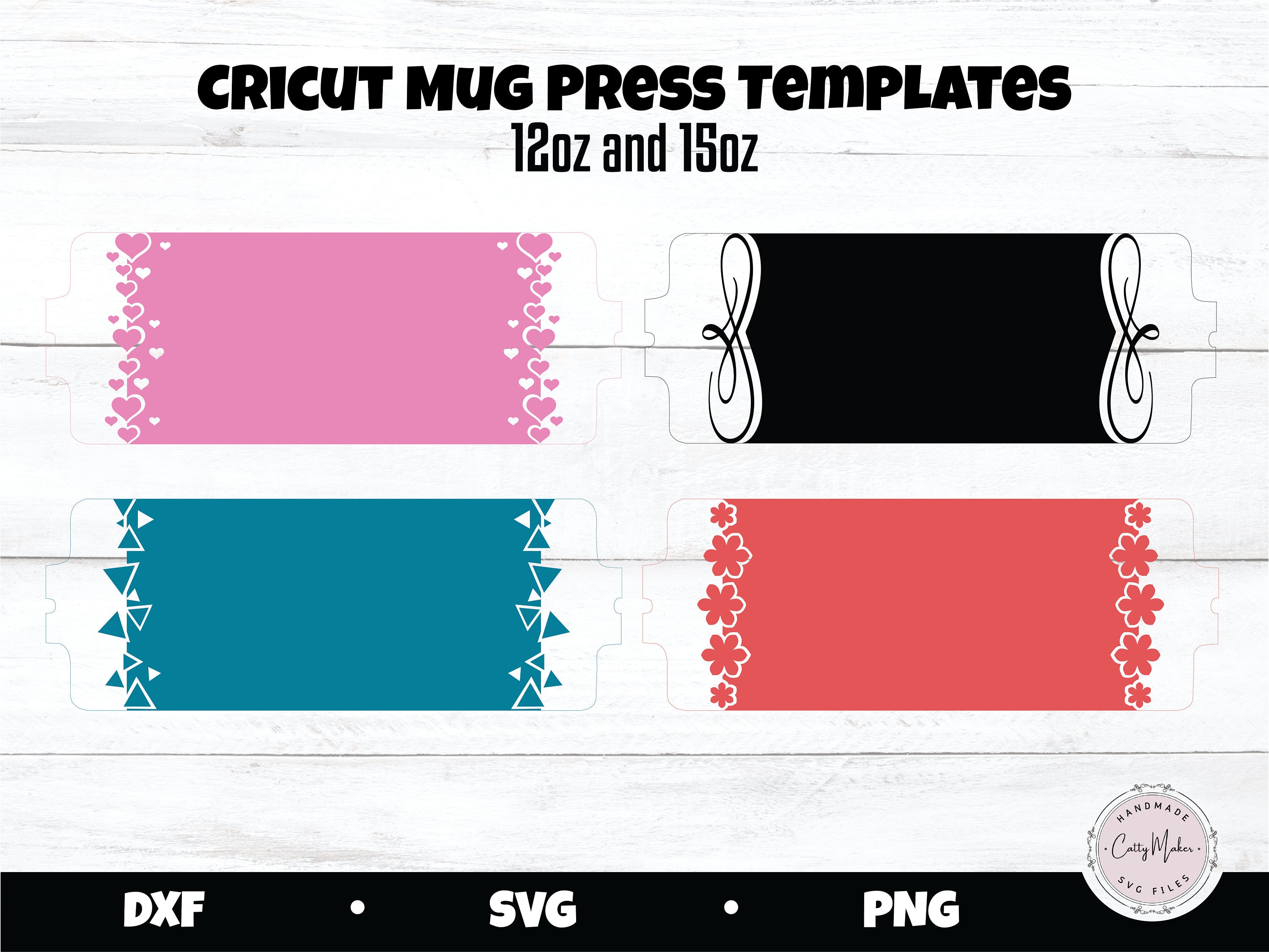 Cricut Mug Press Templates 10oz 12oz and 15oz Mug Sizes