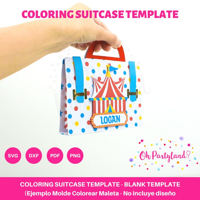 Coloring suitcase box template for Cricut and Silhouette oh partyland