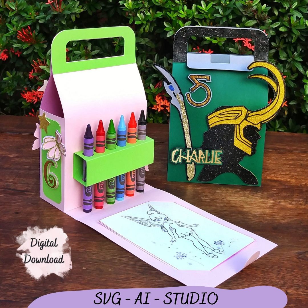 Coloring Suitcase Box Template: Crayon Gift Box SVG Cricut Studio