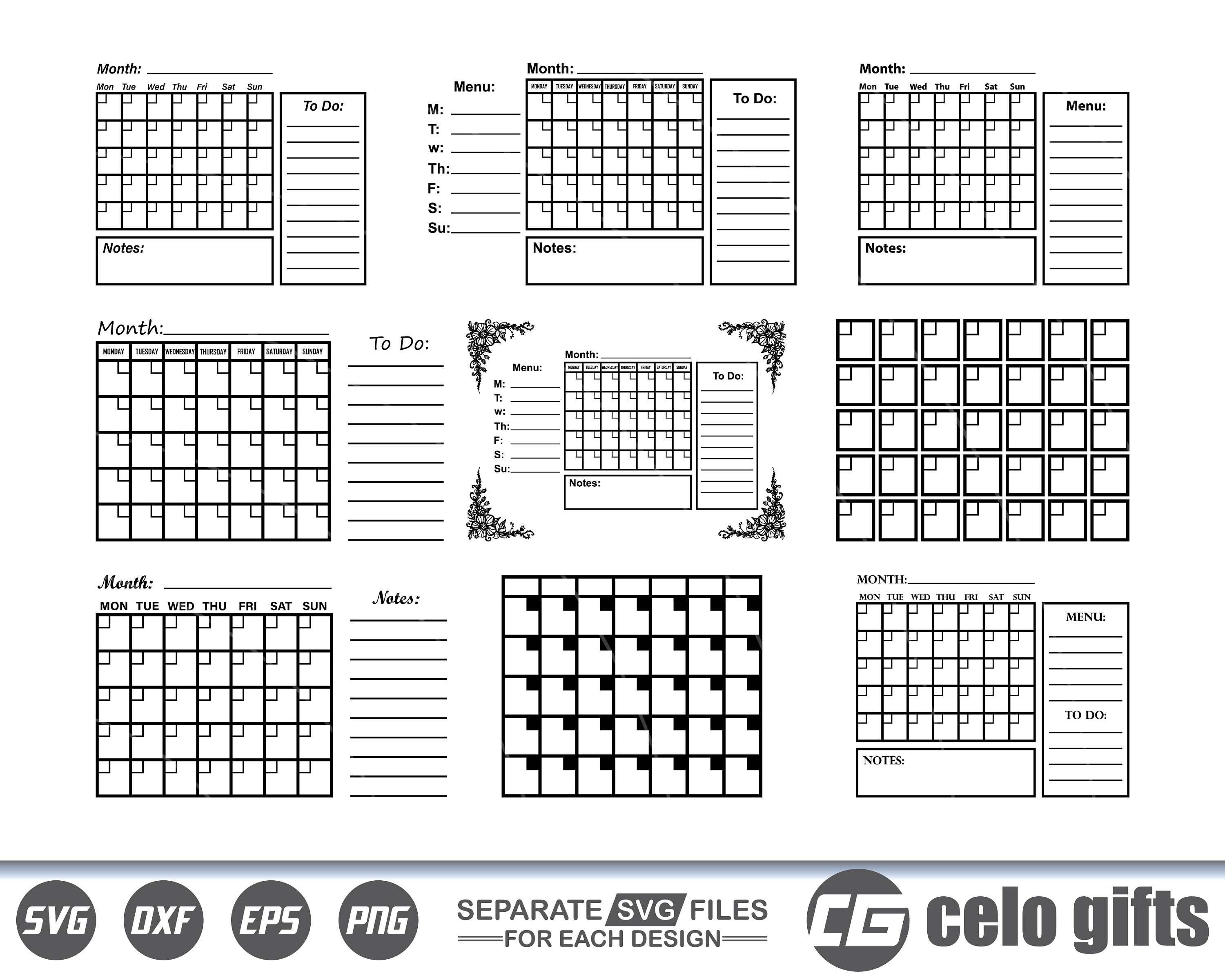 Calendar SVG Calendar Cricut Calendar Svg Bundle Calendar Etsy
