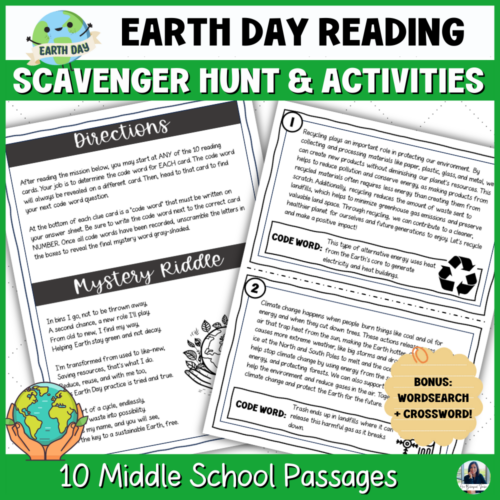 Earth Day Reading Comprehension Crossword Wordsearch for 6th 7th