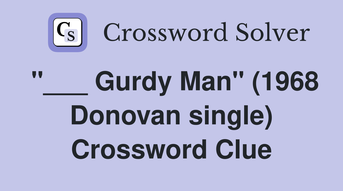 Gurdy Man quot (1968 Donovan single) Crossword Clue Answers Crossword