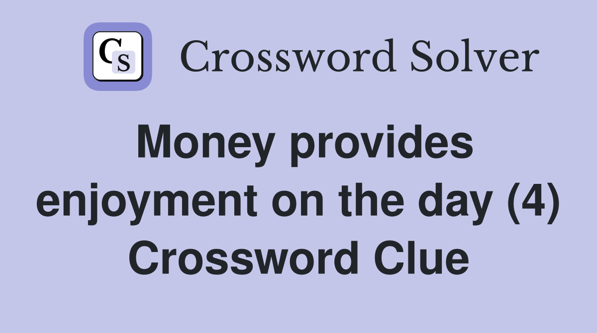 Money provides enjoyment on the day (4) Crossword Clue Answers